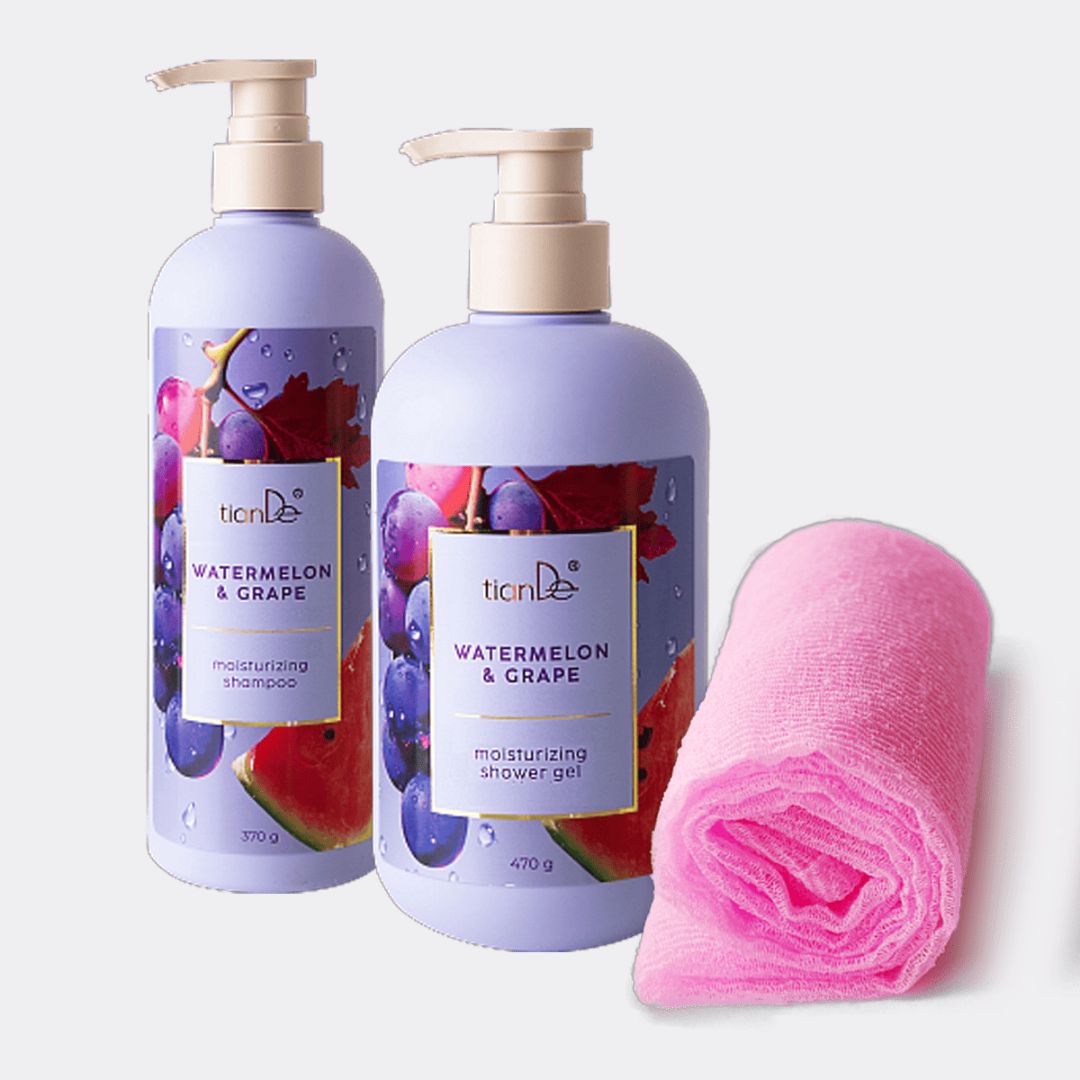 Kúpte 2 produkty: Hydratačný šampón a sprchový gél s vôňou melóna a hrozna – a získajte japonskú exfoliačnú uterák na telo ZADARMO!