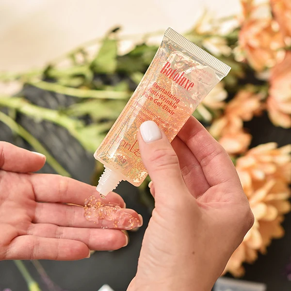 Revitalizačný gél – elixír proti vráskam „Botoluxe“ má vysokú koncentráciu aktívnych zložiek – ovsené bielkoviny, vitamín E, sodné soli kyseliny hyalurónovej, obsahuje zložky prírodného hydratačného faktoru kože – laktózu a sacharózu. Aktivuje ochranné vlastnosti pokožky, vyživuje pleť a podporuje prirodzenú produkciu kolegénu a elastínu, aby vaša pleť dokázala sama bojovať proti prejavom starnutia.